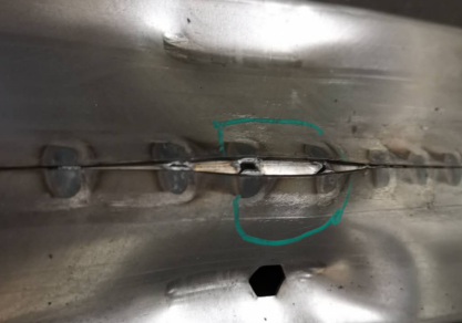 再次進行檢測試驗,焊接后焊接情況良好與熔和直徑過小對比,其中檢測焊點數(shù)值較低, 做好標記后對焊點進行破壞,打開后明顯看到焊點處連接較少,測得熔深直徑為4-5mm,不滿足技術(shù)要求。隨后我們對其他焊點破壞,明顯可以看到測得數(shù)值正常的焊點焊接情況良好,測得熔深直徑為7-8mm。最后確定這一方法可以檢測工件焊點熔深直徑。