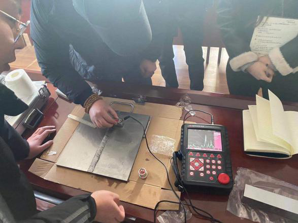 美泰工程師首先為現(xiàn)場(chǎng)技術(shù)人員詳細(xì)講解了設(shè)備的功能作用、工作原理、操作使用、相關(guān)配置說明、維保注意事項(xiàng)等,普及理論知識(shí)和檢測(cè)常識(shí)后,現(xiàn)場(chǎng)指導(dǎo)使用人員的實(shí)際上手操作。美泰超聲波探傷儀MUT550B,人性化設(shè)計(jì)輕松操作,設(shè)有細(xì)致入微的步驟操作提示功能,僅需要做出是與否的簡(jiǎn)單判斷,即可根據(jù)每一步提示,完成復(fù)雜的調(diào)校,綜合閘門自動(dòng)報(bào)警等功能,真正實(shí)現(xiàn)“傻瓜式”無漏檢探傷,是初學(xué)者的明智之選。