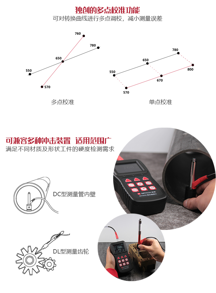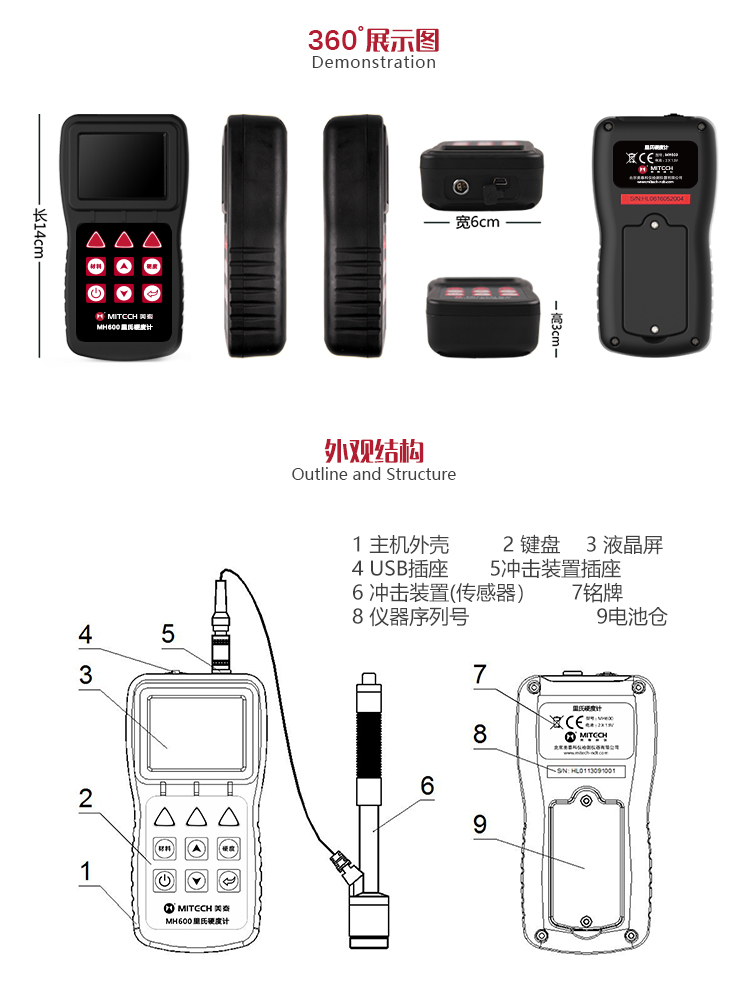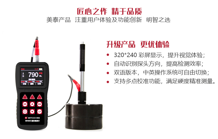 MH600便攜式里氏硬度計,智能化設(shè)計可方便快捷地現(xiàn)場檢測金屬硬度。IP65防護(hù)等級,可有效防御惡劣現(xiàn)場環(huán)境中的油污、粉塵及其它腐蝕;采用彩色液晶顯示屏,光線昏暗及日光強(qiáng)烈環(huán)境下也能為您呈現(xiàn)清晰測量結(jié)果,大大提升了視覺體驗;獨創(chuàng)的多點校準(zhǔn)功能,可對轉(zhuǎn)換曲線進(jìn)行多點調(diào)校,減小測量誤差;測量中儀器可自動識別測量方向,超出設(shè)定范圍自動報警、可語音播報測量結(jié)果,滿足高效采集多角度材料的精準(zhǔn)檢測需求,支持多種硬度制氏間的自由轉(zhuǎn)換;低功耗設(shè)計由兩節(jié)AA五號電池供電,支持多種語言版本切換。被廣泛地應(yīng)用于金屬加工制造業(yè)、特種設(shè)備或永久性組件的在役失效分析、商檢等領(lǐng)域。特別適宜對大型不可拆卸部件的現(xiàn)場硬度測試。是提高生產(chǎn)合格率、節(jié)約成本必備的專業(yè)精密儀器。