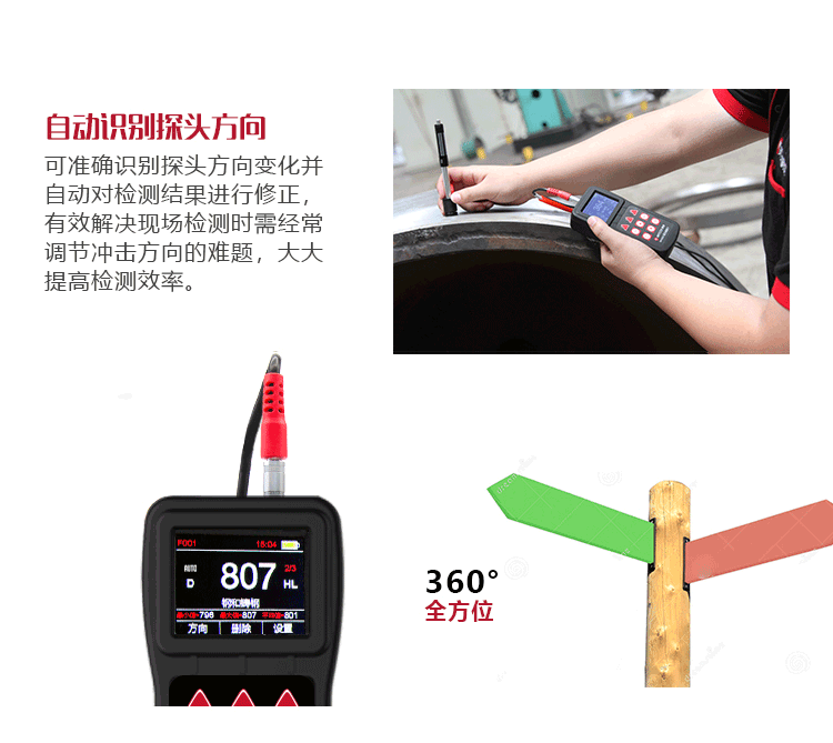 自動識別沖擊方向(G型沖擊裝置除外),360°全方位自由測量