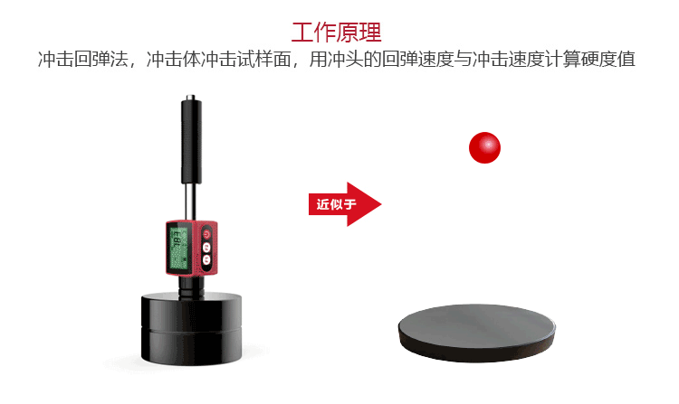用規(guī)定質(zhì)量的沖擊體在彈力作用下,以一定速度沖擊試樣表面,用沖頭在距試樣表面1mm處的回彈速度與沖擊速度的比值計(jì)算硬度值。計(jì)算公式如下: