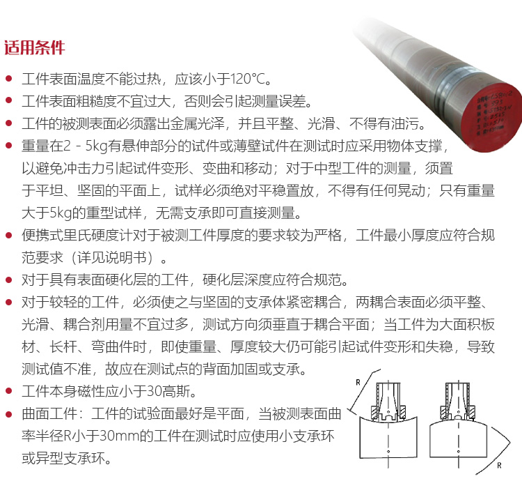 美泰便攜式里氏硬度計(jì)標(biāo)配小支撐環(huán),用于曲面工件,若被測表面曲面率半徑R小于30mm時,在測試時的應(yīng)使用小支撐環(huán),它能夠使被測工件平穩(wěn),沖擊體和待測工件完全接觸,從而確保所測工件硬度值準(zhǔn)確性。如工件為較特殊的曲面等情況,需選用異型支撐環(huán)。 |