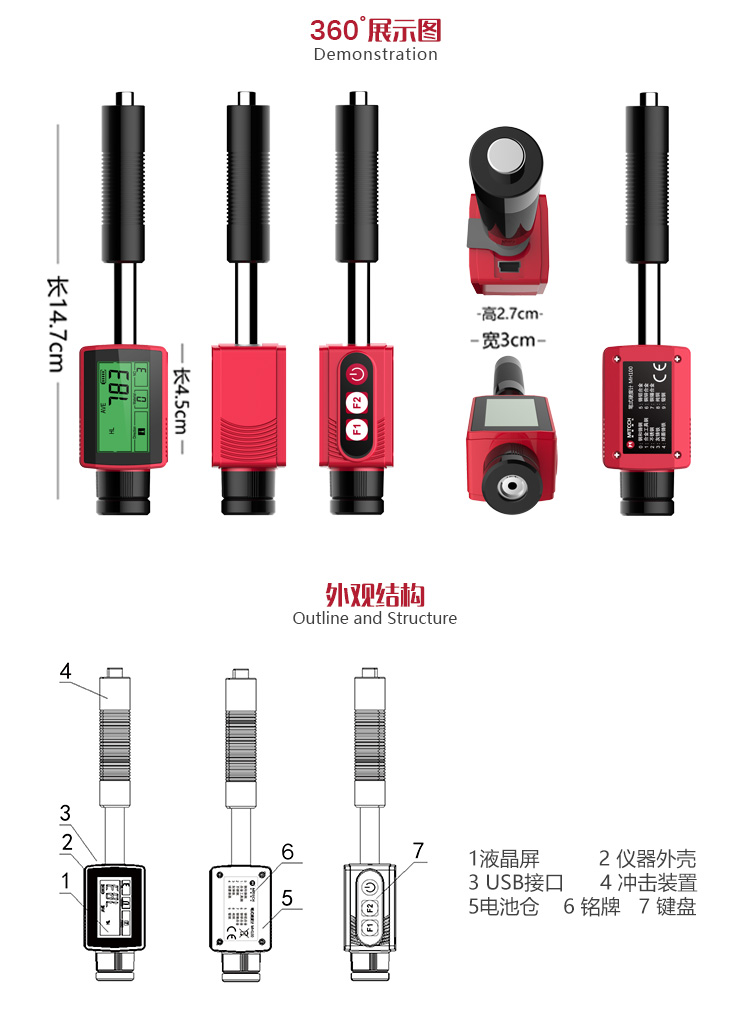 基于里氏硬度測量原理,可對多種金屬材料進(jìn)行硬度測試,測量結(jié)果可轉(zhuǎn)換為里氏(HL)、布氏(HB)、洛氏B(HRB)、洛氏C(HRC)、洛氏A(HRA)、維氏(HV)、肖氏(HS)。