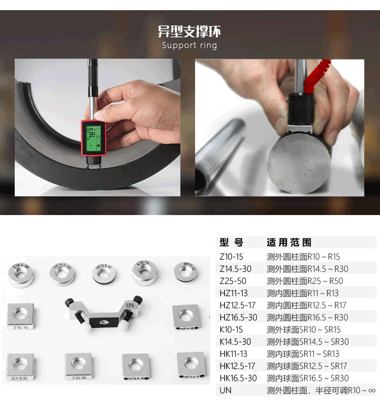 美泰鋼管硬度計(jì)異型支承環(huán)HZ12.5-17,適用于R12.5-17 內(nèi)圓柱面的檢測,可替代標(biāo)準(zhǔn)支撐環(huán)使用。 | |
