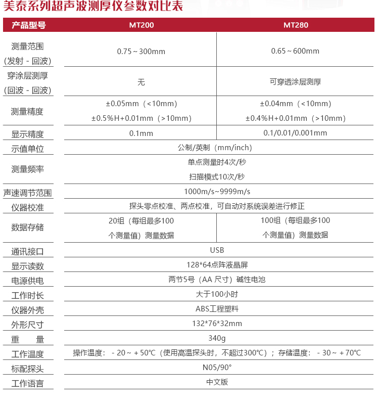 美泰系列超聲波測厚儀,均采用低功耗設(shè)計理念,超長待機,MT150/MT160/MT200/MT180/MT192/MT280/MT600/MT660均由兩節(jié)AA五號電池供電、更換方便。 | |