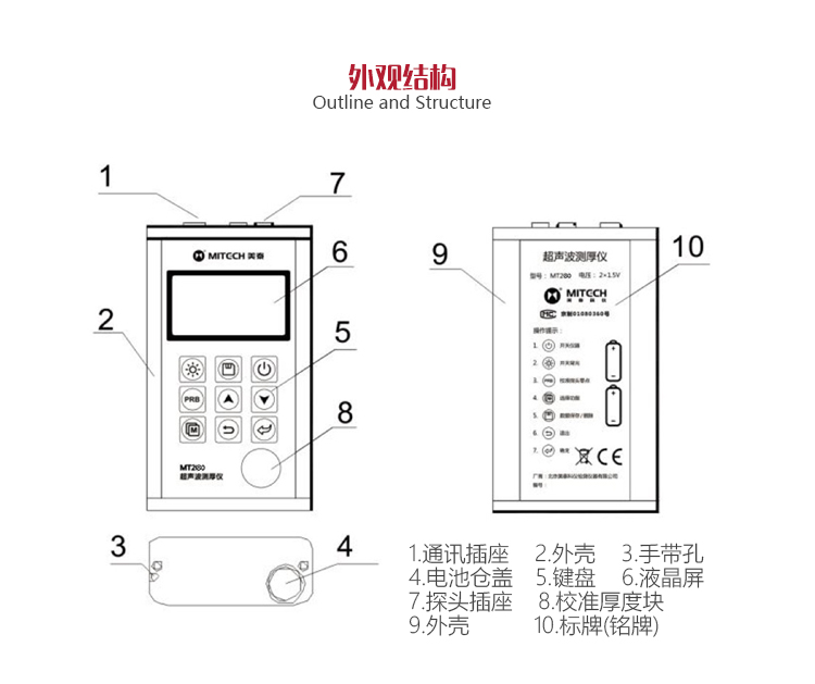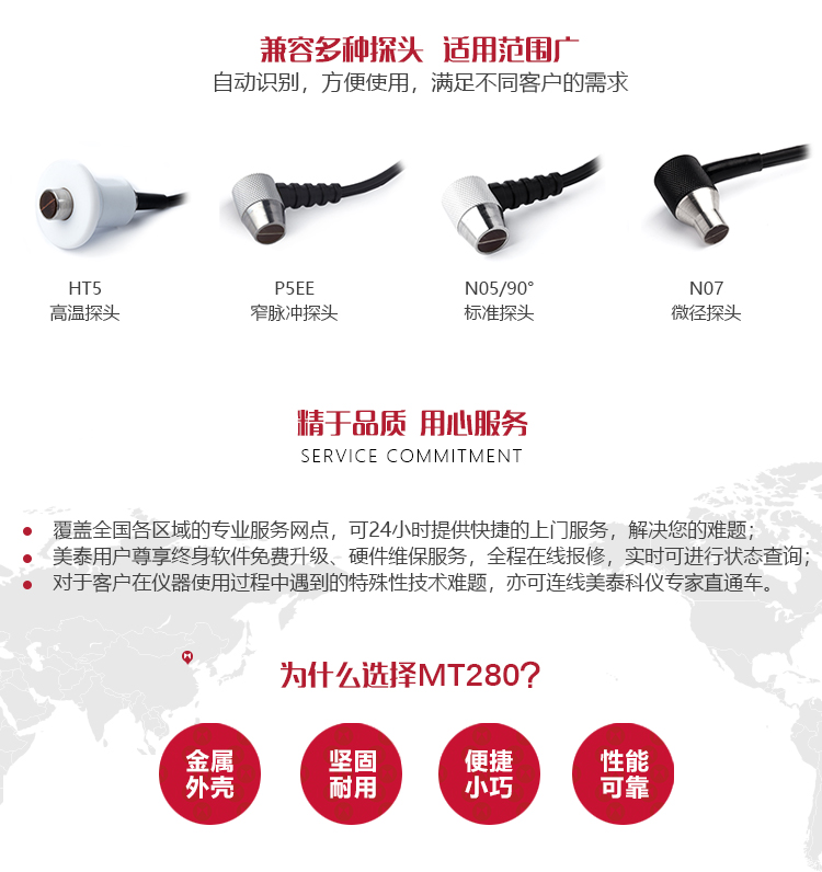 探頭直徑 | 測厚探頭NO5直徑10MM、微晶探頭N07直徑6MM、高溫探頭HT5直徑12MM、窄脈沖測厚探頭P5EE直徑10MM、粗晶探頭直徑12MM |
