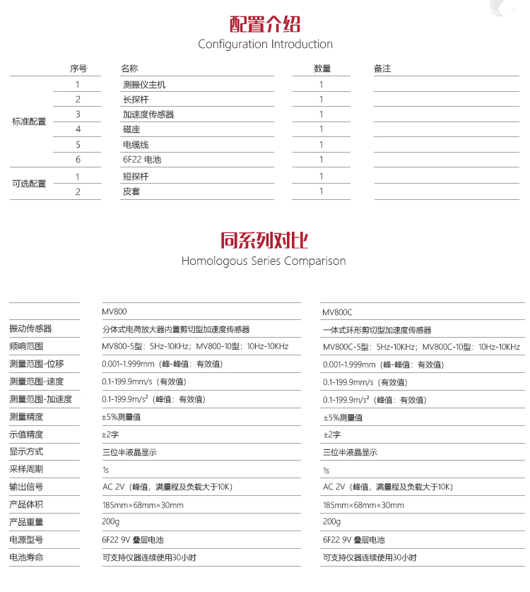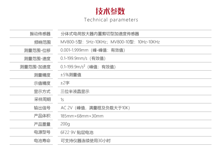 頻響范圍 | MV800-5型:5Hz~10KHz;MV800-10型:10Hz~10KHz |