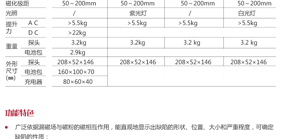 ? 白光配置的CJE220D可進(jìn)行普通磁粉探傷,紫光配置的CDX220可進(jìn)行紫光磁粉探傷,磁軛間距可調(diào)節(jié),一體化設(shè)計(jì)結(jié)構(gòu)緊湊、布局合理、體積小巧、方便攜帶,可滿足不同用戶的不同需求;