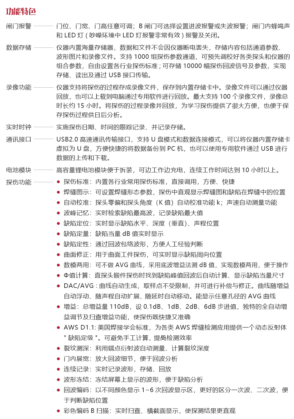 靈敏度余量 | >65dB(深200mmФ2平底孔) |
