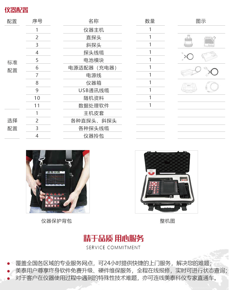 美泰超聲波探傷儀附有專用的隨機(jī)裝箱資料。包括產(chǎn)品合格證、保修卡、產(chǎn)品說明書、裝箱清單。隨機(jī)資料采用專用的銅版紙印制,說明書圖文設(shè)計(jì),美觀、易懂、便于長久保存。注:美泰品牌系列產(chǎn)品的隨機(jī)資料均可登陸www.walad.cn下載電子版。 | |