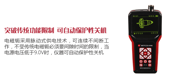 ?電磁軛采用脈動式供電技術(shù),可連續(xù)不間斷工作,不受傳統(tǒng)電磁軛必須要間隙時間的限制,當電源電壓低于9.0V時,儀器可自動保護性關(guān)機。
