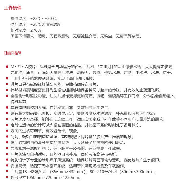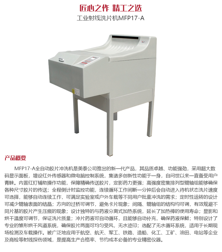MFP17-A膠片沖洗機是全自動運行的臺式沖片機。