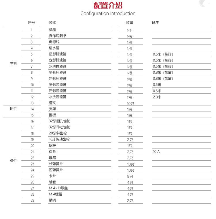 全自動運行的臺式沖片機。特別設計的兩組停影水槽,大大提高定影藥力和沖片質量,可滿足大量膠 片沖洗,流程為:顯影、停影水洗、定影、