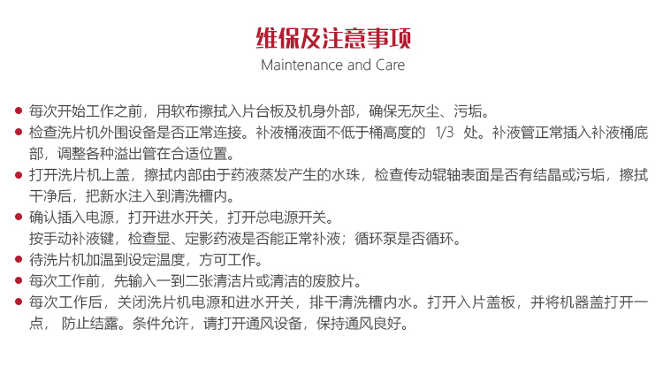 操作人員應嚴格按照膠片沖洗規(guī)定,選用合格的高溫快顯機洗工業(yè)藥水。選用藥水應在包裝處注明高溫快顯機洗標志,配比要求請按照藥業(yè)廠家說明配比,膠片沖洗說明和藥液沖洗說明相吻合。我們建議,客戶應選擇有溶液機洗說明的高溫快顯藥水。