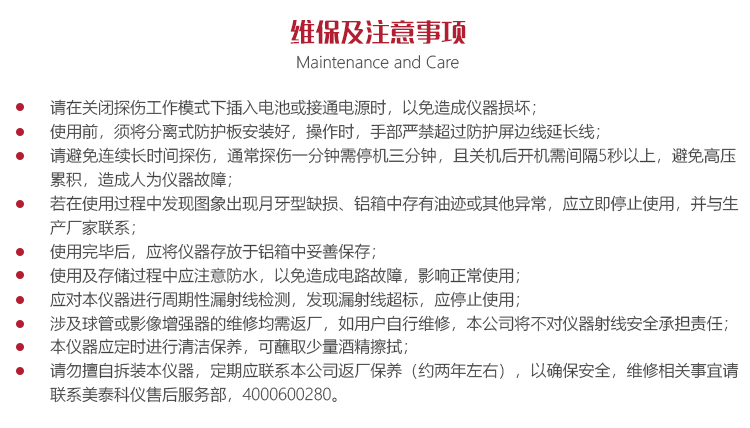 涉及球管或影像增強(qiáng)器的維修均需返廠,如用戶自行維修,本公司將不對儀器射線安全承擔(dān)責(zé)任;