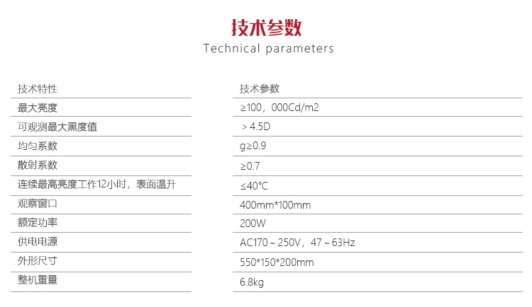 可清晰觀看4.5D以上黑度底片上的微小缺陷,滿足日常使用需求;