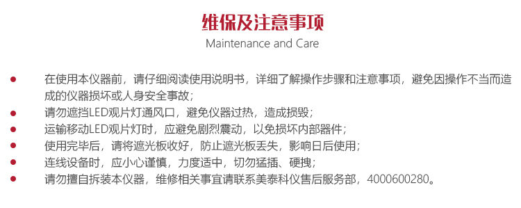 請(qǐng)勿遮擋LED觀片燈通風(fēng)口,避免儀器過熱,造成損毀;