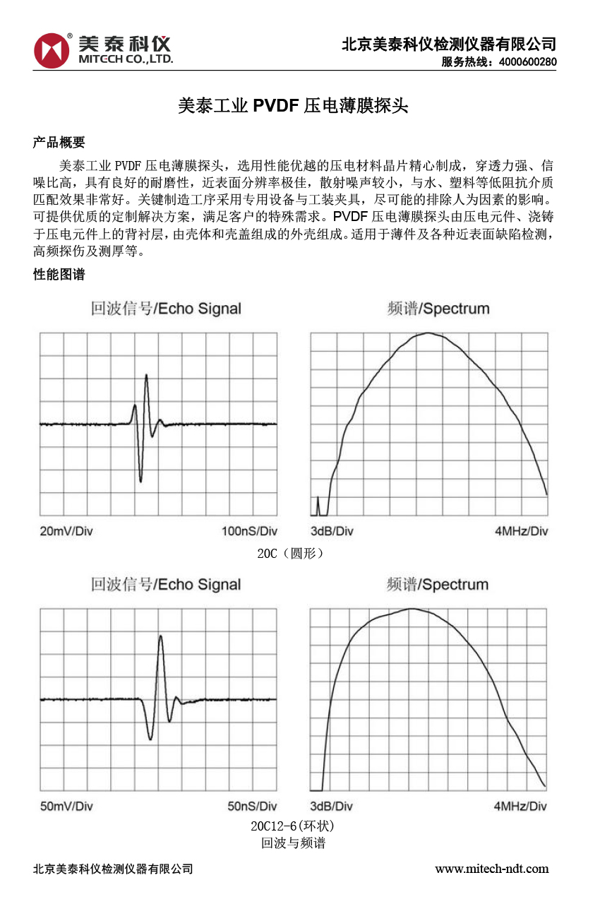美泰工業(yè)PVDF壓電薄膜探頭,選用性能優(yōu)越的壓電材料晶片精心制成,穿透力強、信噪比高,具有良好的耐磨性,近表面分辨率極佳,散射噪聲較小,與水、塑料等低阻抗介質(zhì)匹配效果非常好。關(guān)鍵制造工序采用專用設(shè)備與工裝夾具,盡可能的排除人為因素的影響??商峁﹥?yōu)質(zhì)的定制解決方案,滿足客戶的特殊需求。PVDF壓電薄膜探頭由壓電元件、澆鑄于壓電元件上的背襯層,由殼體和殼蓋組成的外殼組成。適用于薄件及各種近表面缺陷檢測,高頻探傷及測厚等。