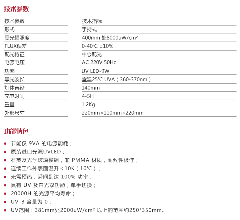 黑光幅照度 | 400mm 處8000uW/cm2 |