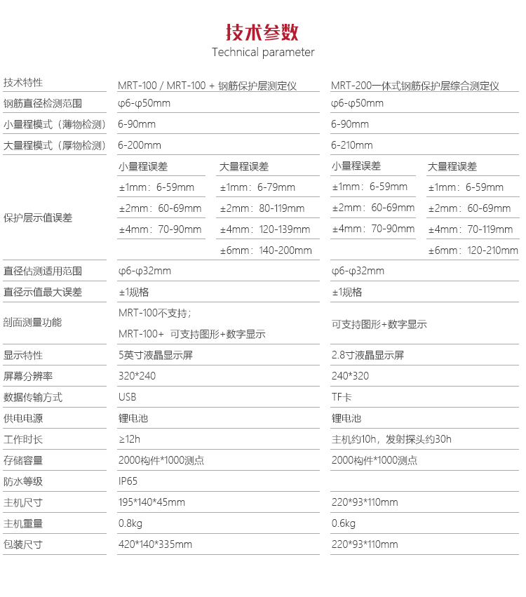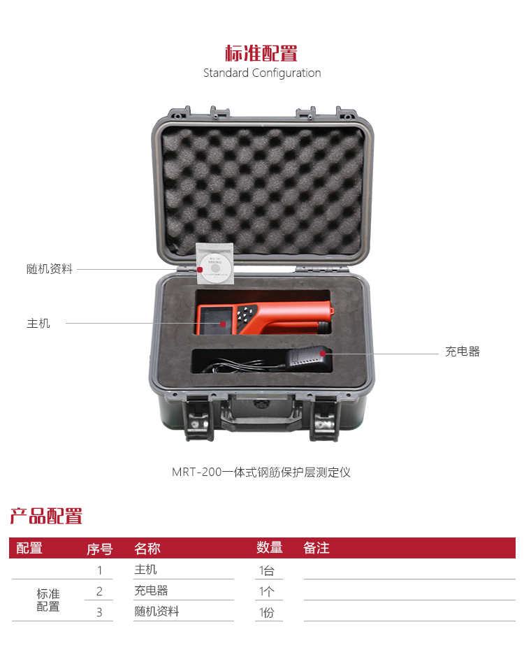美泰MRT-200一體式鋼筋保護層測定儀,基于電磁感應原理,采用一體化便攜式設計,可快速無損檢測鋼筋位置、布筋情況,根據(jù)已知直徑檢測混凝土保護層厚度及鋼筋直徑。其測量速度快、測量精度高、性能穩(wěn)定可靠,適用于對現(xiàn)有鋼筋混凝土工程及新建鋼筋混凝土結構施工質量的檢測,也可對非磁性和非導電介質中的磁性體及導電體的位置進行檢測,如墻體內的電纜、水暖管道等。是一款專業(yè)多功能智能型精密無損檢測儀器。
