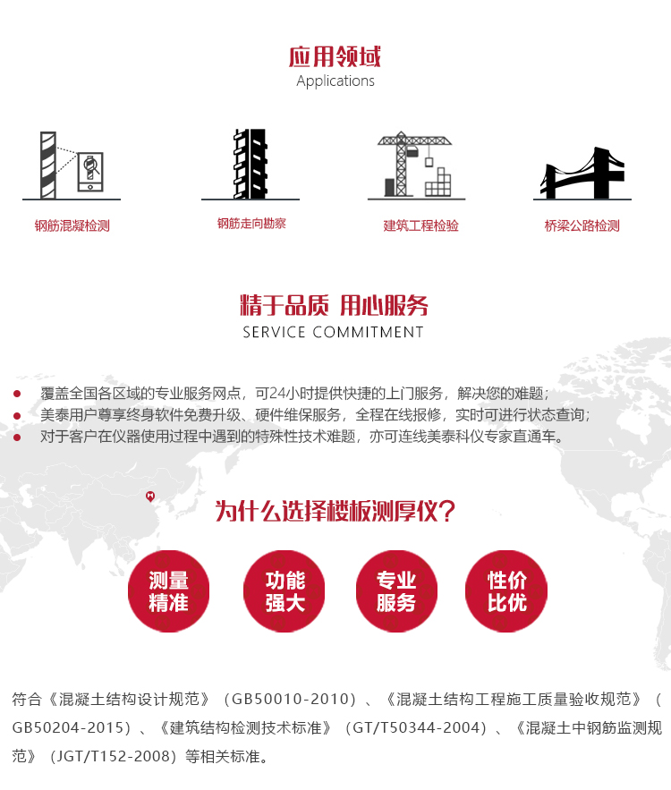 l 符合《混凝土結構設計規(guī)范》(GB50010-2010)、《混凝土結構工程施工質量驗收規(guī)范》(GB50204-2015)、《建筑結構檢測技術標準》(GT/T50344-2004)、《混凝土中鋼筋監(jiān)測規(guī)范》(JGT/T152-2008)等相關標準。
