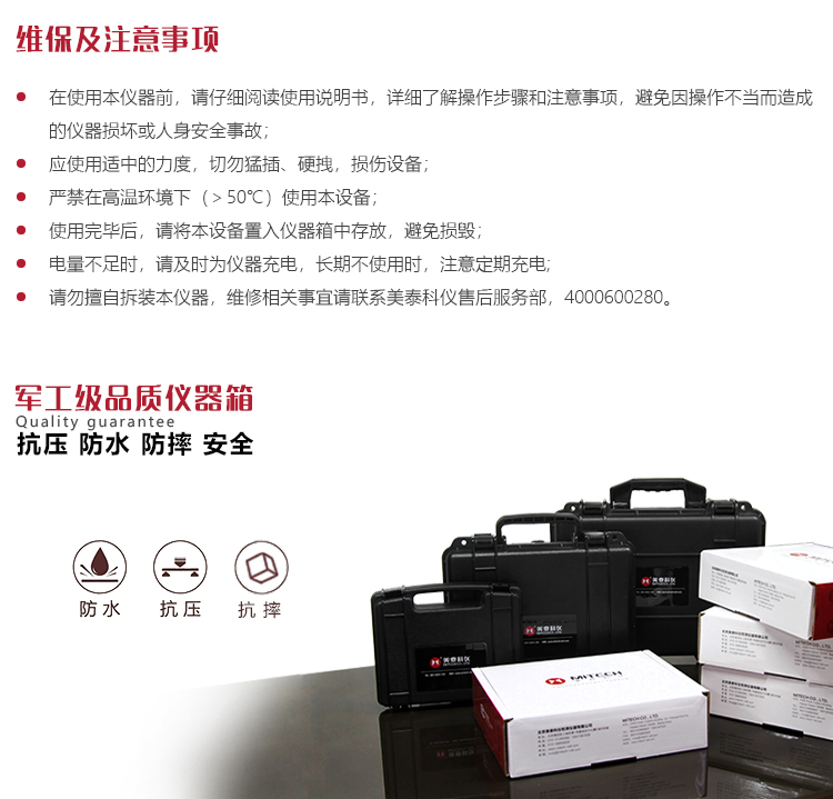 l 請勿擅自拆裝本儀器,維修相關事宜請聯(lián)系美泰科儀售后服務部,4000600280。