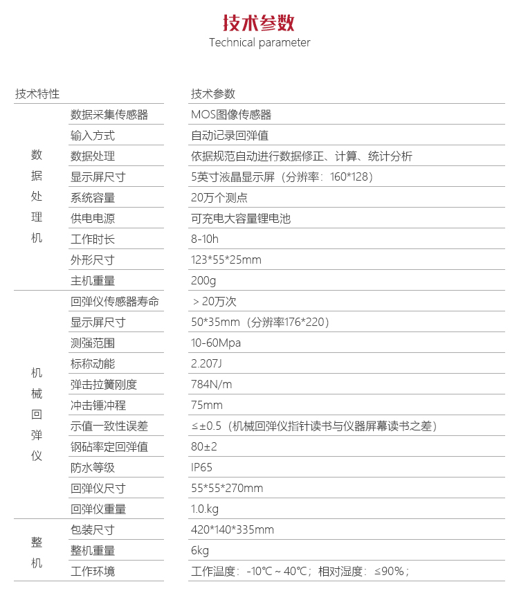 回彈儀傳感器壽命 | >20萬(wàn)次 |