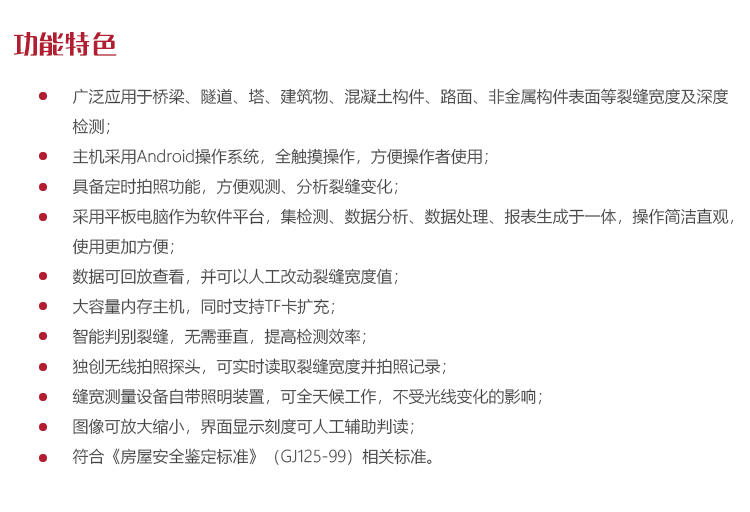 l 獨(dú)創(chuàng)無線拍照探頭,可實(shí)時(shí)讀取裂縫寬度并拍照記錄;