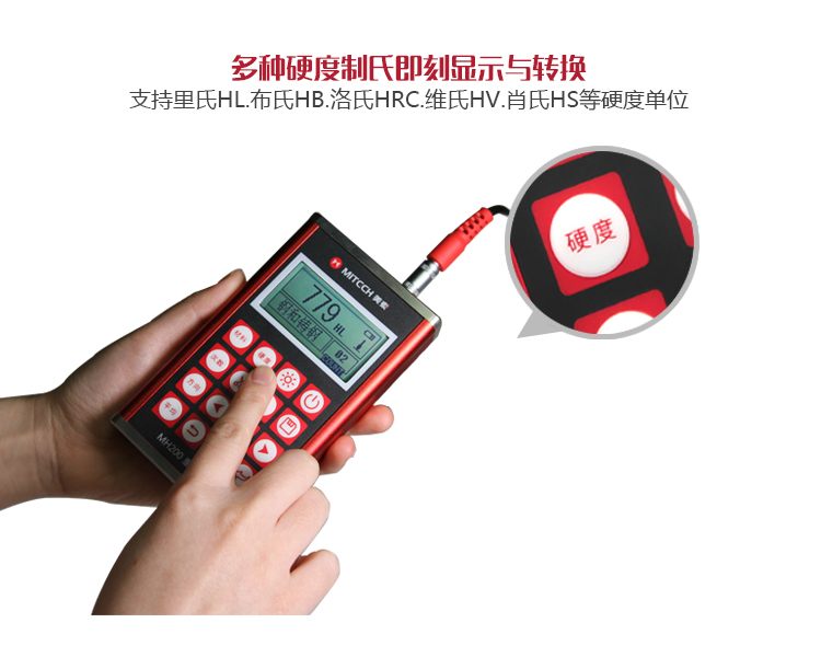 單位制式 | 里氏(HL)、布氏(HB)、洛氏B(HRB)、洛氏C(HRC)、洛氏A(HRA)、維氏(HV)、肖氏(HS) |