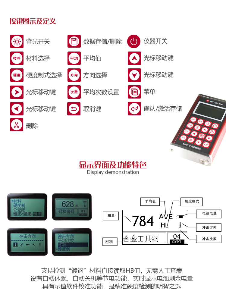 MH200便攜式里氏硬度計(jì),基于里氏硬度測(cè)量原理,可方便快捷地現(xiàn)場(chǎng)檢測(cè)多種金屬材料的硬度,支持里氏、布氏、洛氏等多種硬度制氏間的自由轉(zhuǎn)換。它采用國(guó)際流行的全封閉鋁美合金外殼,堅(jiān)固耐用,擁有強(qiáng)大的抗電磁、抗振動(dòng)、抗干擾能力;低功耗設(shè)計(jì)依托穩(wěn)定的IC集成電路,性能可靠;全中文點(diǎn)陣液晶顯示,菜單式操作簡(jiǎn)單快捷;支持PC機(jī)通訊及打印功能。被廣泛應(yīng)用于退火、回火、淬火熱處理工件的質(zhì)量控制;機(jī)床導(dǎo)軌、汽車底盤的硬度檢測(cè);大型不可拆卸零部件的現(xiàn)場(chǎng)在役硬度測(cè)試;五金、鍛造、機(jī)床、特種鋼材的質(zhì)量檢測(cè);批量生產(chǎn)過程中產(chǎn)品的質(zhì)量控制等,質(zhì)優(yōu)價(jià)廉,實(shí)用經(jīng)濟(jì),是硬度檢測(cè)常規(guī)需求的明智之選。