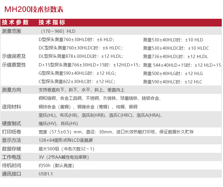 可存儲(chǔ)最大500組(沖擊次數(shù)32~1)硬度測(cè)量數(shù)據(jù),USB1.1接口